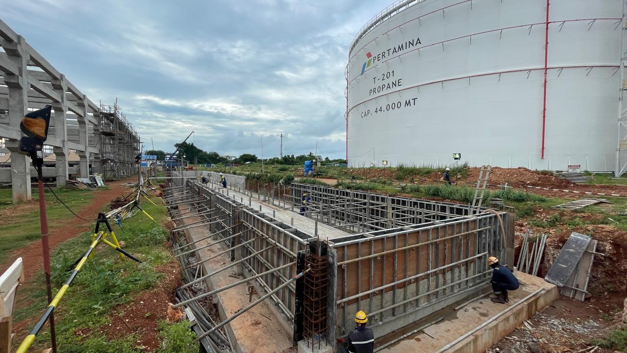 Fabrikasi besi slab butane pond, slab LPG pond, Wing wall dike wall concrete. |