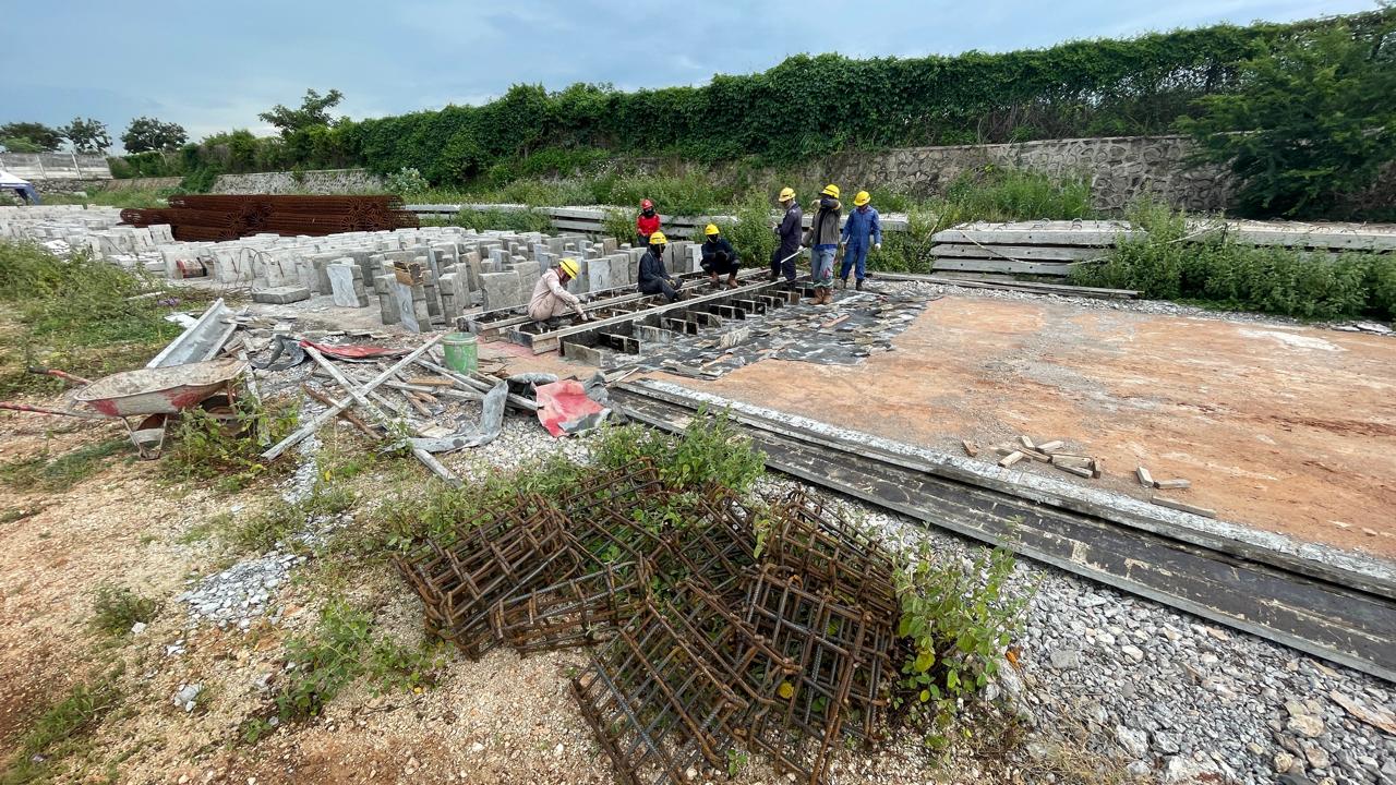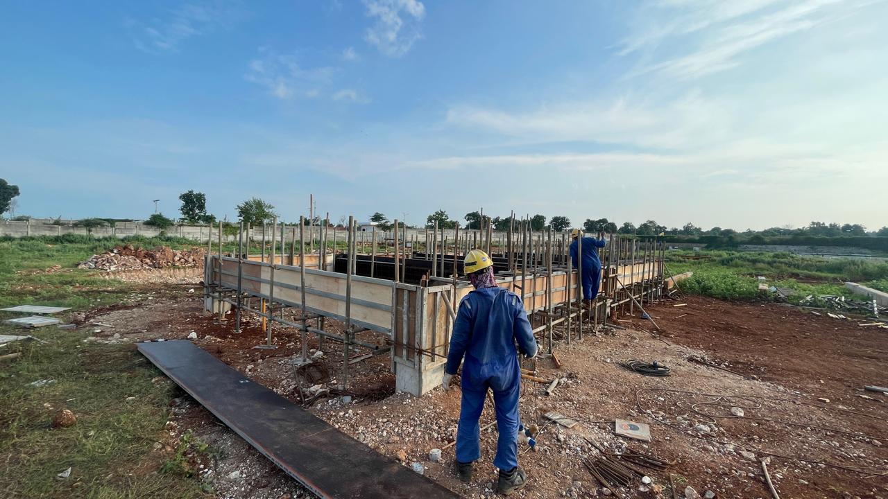 Pemasangan besi. pengecoran (lean concrete) 10 m3, dan perataan serta pemadatan tanah area sebelah timur. rencana hari Kamis 23 Januari 2025 continue pengecoran (lean concrete) area berikutnya |