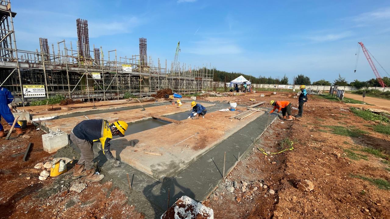 Pemasangan besi slab, pengecoran lean concrete (19 m3). |