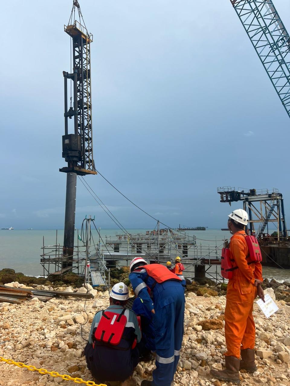 1. Instal scafolding di grid 7 2. Load test U-shell menggunakan crane 260 T dan TK 230 ft 3. Loading dan unloading material U-shell 10 unit 3. Cutting pile grid 5 |