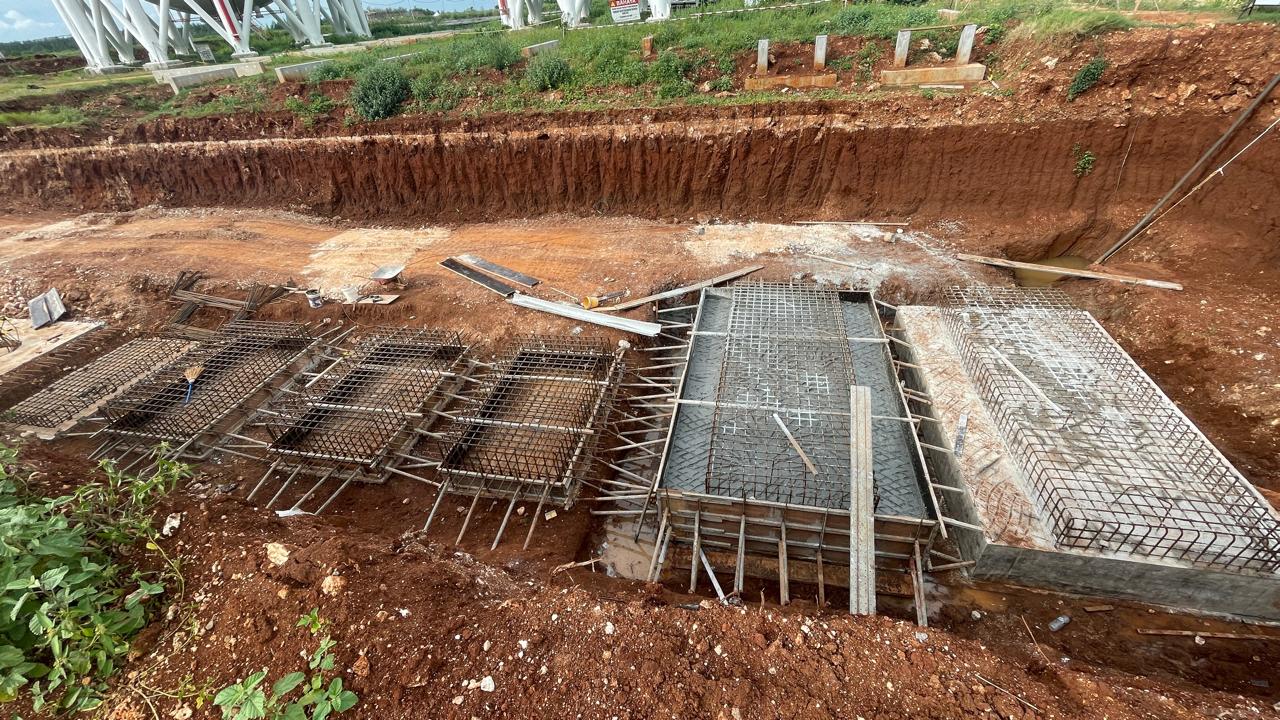 Pengecoran fondasi 101-B, pemasangan besi dan bekisting 102-A,B,C dan pemasangan besi fondasi 102-D. |