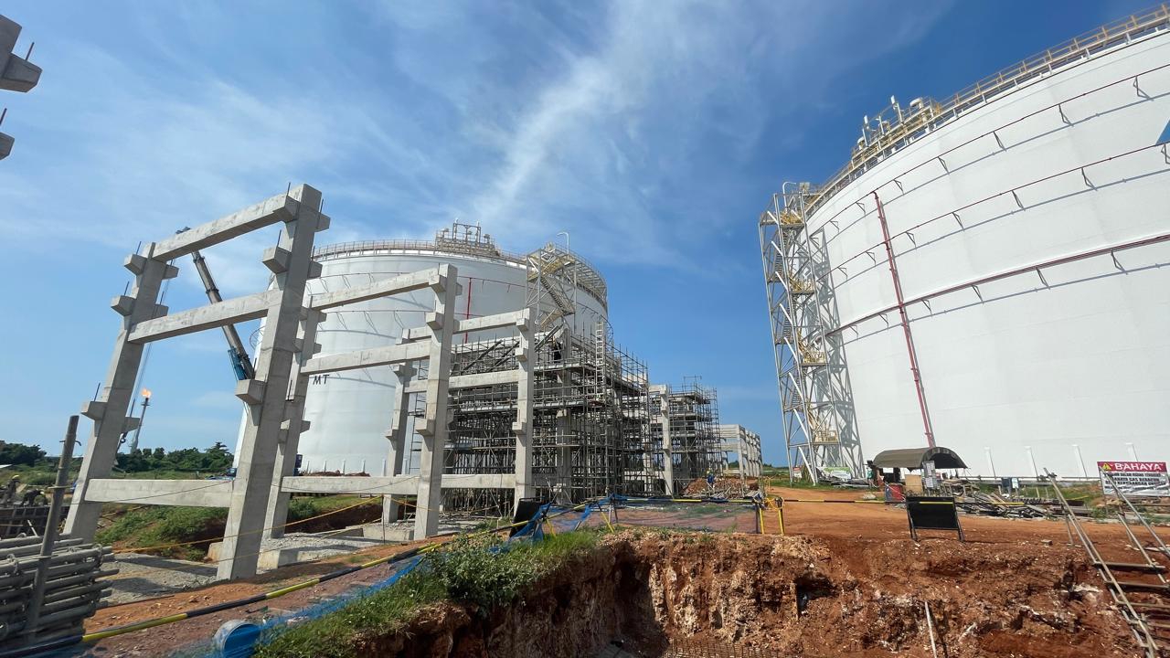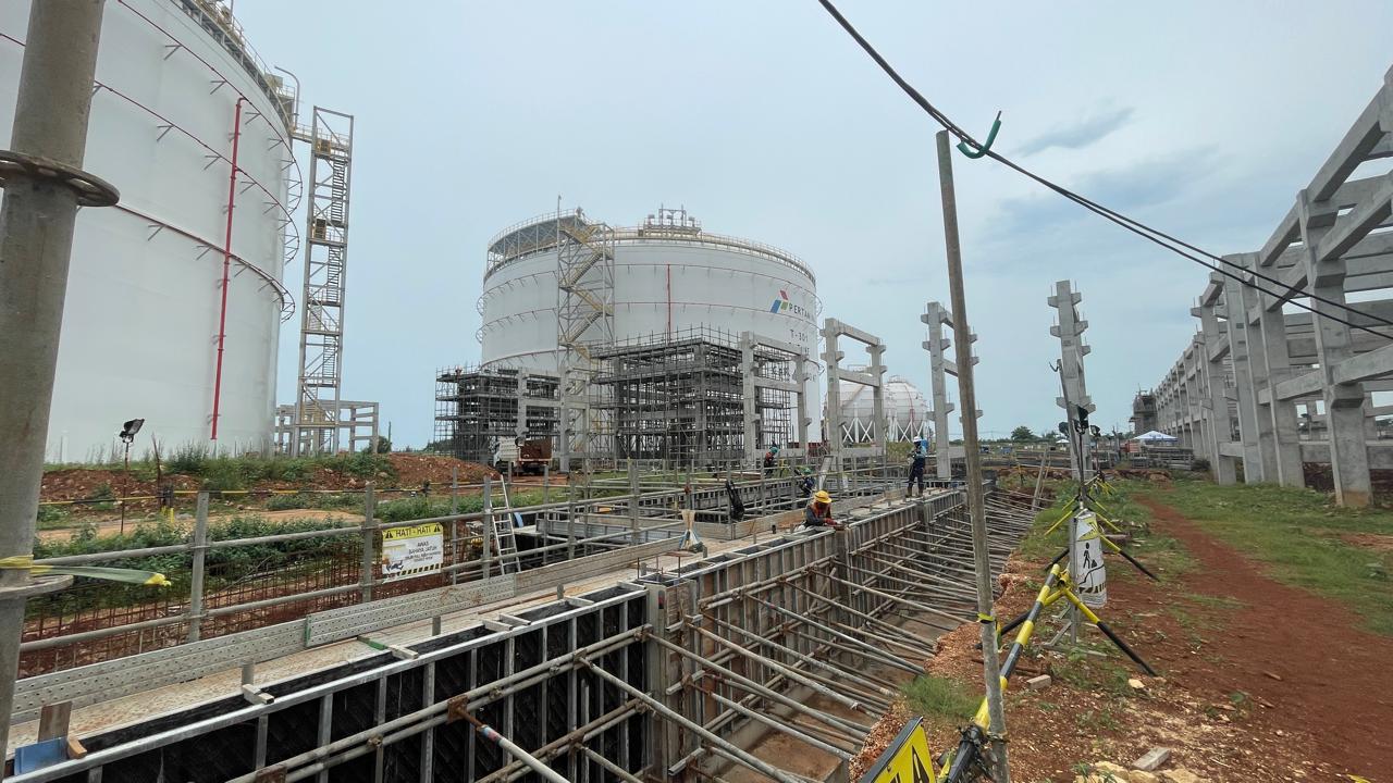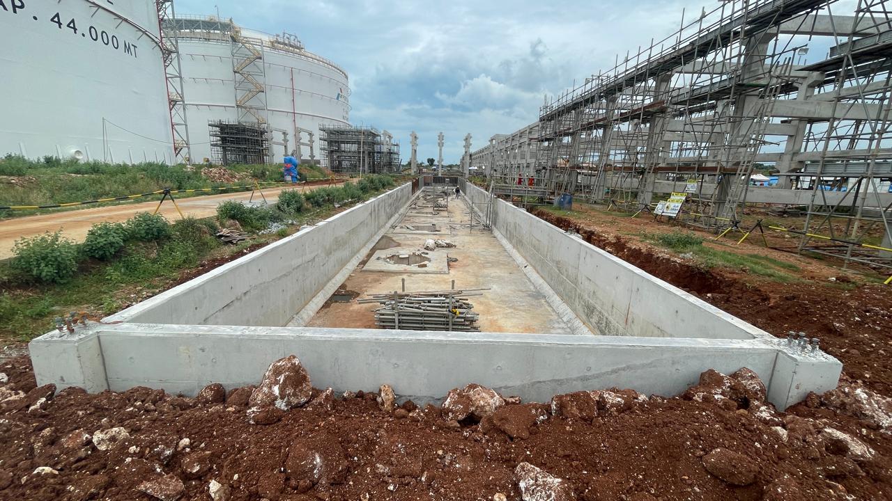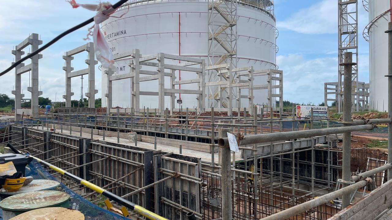 Fabrikasi besi slab butane pond, slab LPG pond, Wing wall dike wall concrete. |