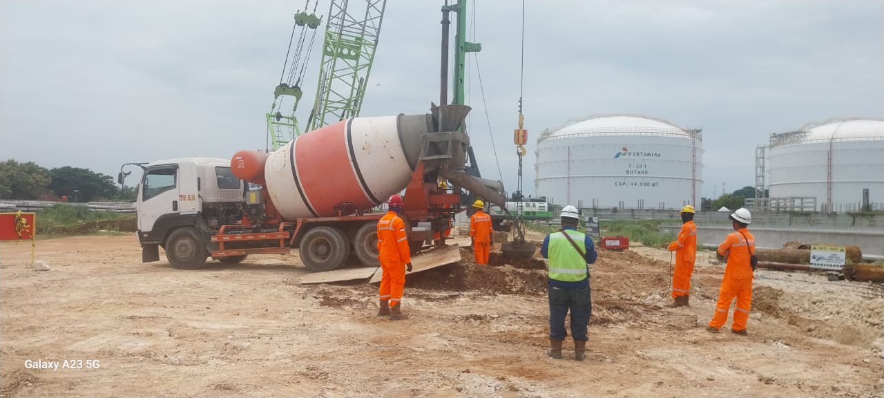 Pengeboran dan pengecoran fondasi borepile 3 titik. kumulatif terbor dan tercor 11 titik remaining 76 titik |