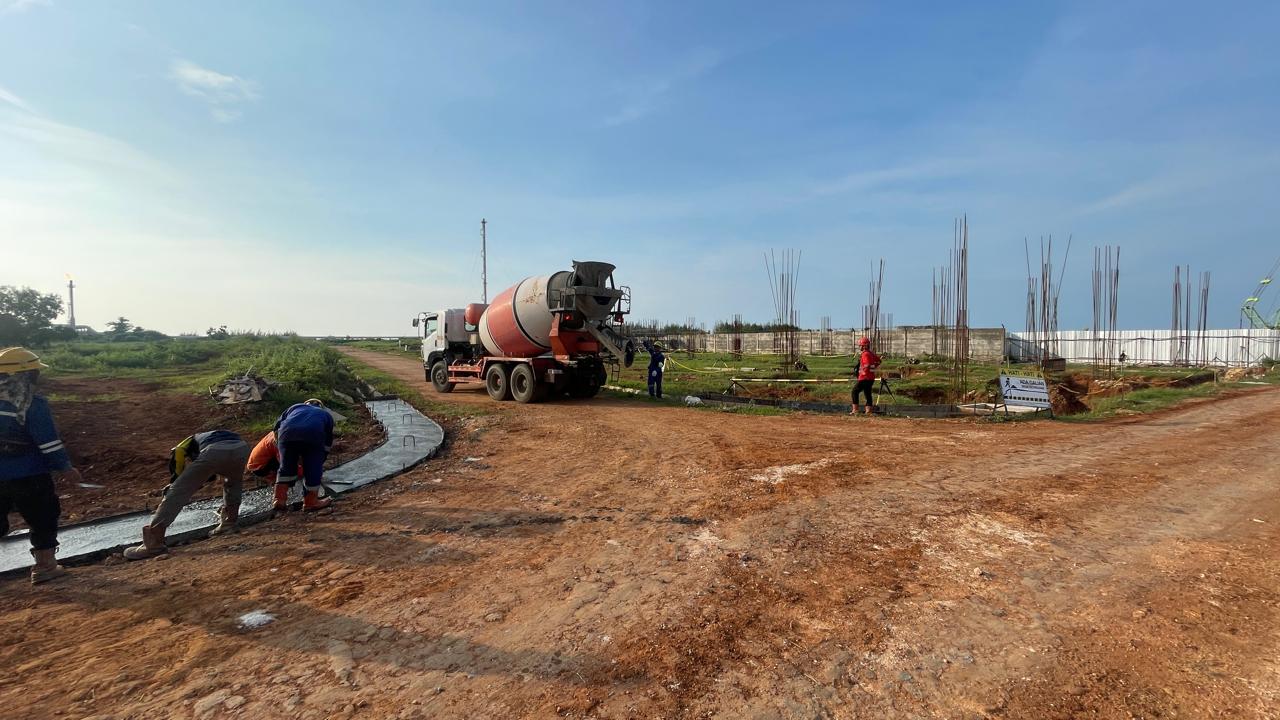 Pemasangan besi. pengecoran (lean concrete) 10 m3, dan perataan serta pemadatan tanah area sebelah timur. rencana hari Kamis 23 Januari 2025 continue pengecoran (lean concrete) area berikutnya |