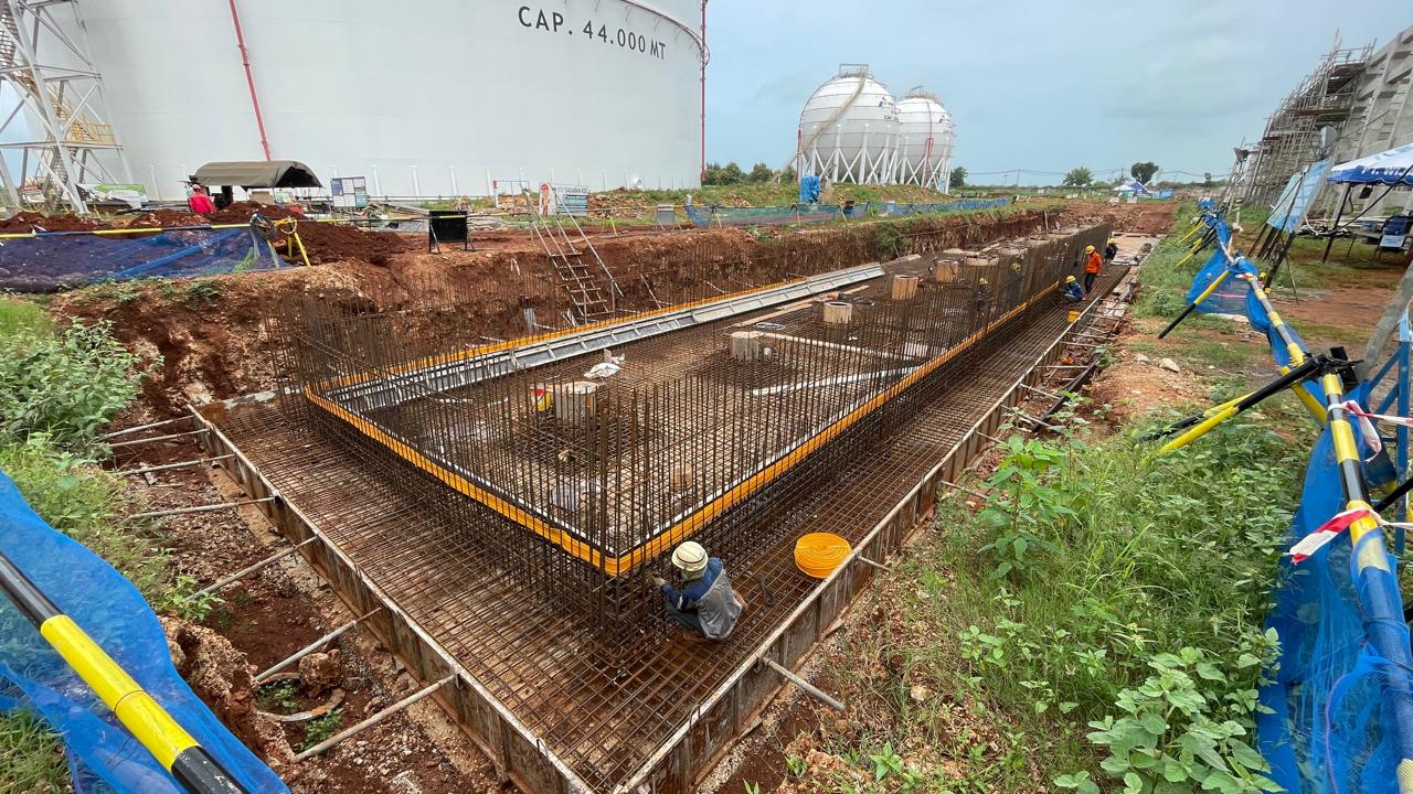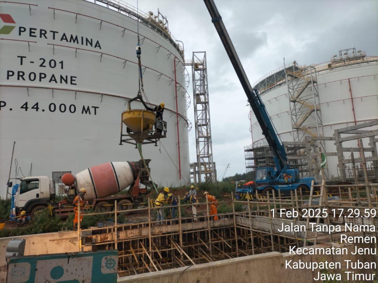 Fabrikasi besi slab butane, LPG pond, dan footing dike wall concrete |