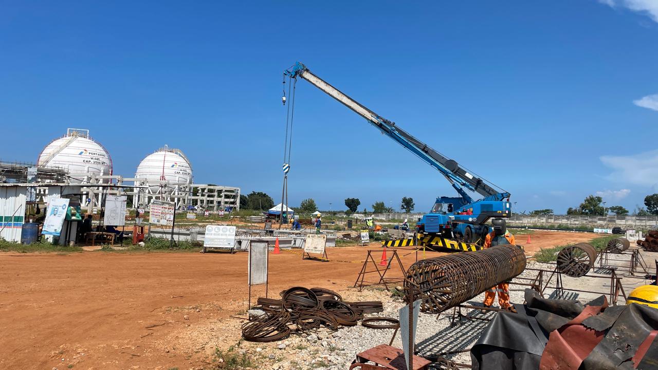 1. Instal scafolding di grid 7 2. Load test U-shell menggunakan crane 260 T dan TK 230 ft 3. Loading dan unloading material U-shell 10 unit 3. Cutting pile grid 5 |