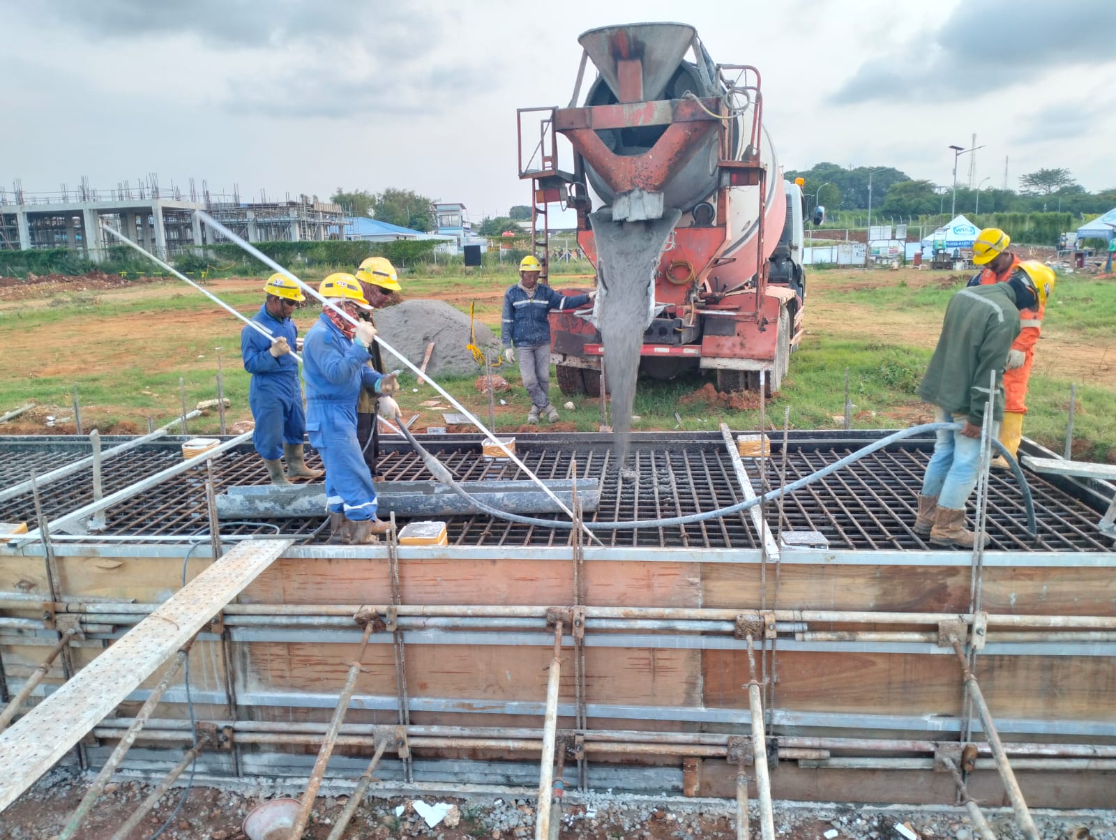 Pemasangan besi slab, pengecoran lean concrete (19 m3). |